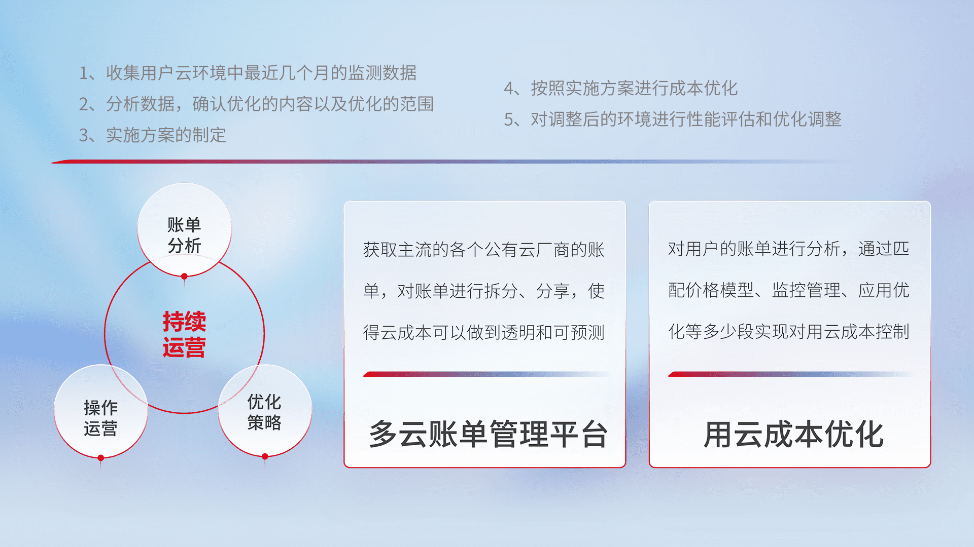 运用智能化工具分析云资源,,,提供日常费用可视化工具,,自动账单拆分,,,成本优化云上费用,,,,降本增效。。